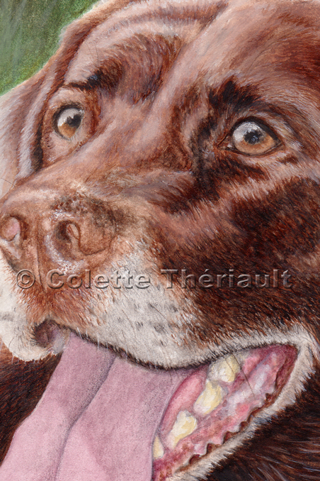 Client's comments:  Ma’am, thank you so much for your care and loving touch you put into Cookie’s portrait. It was hard to watch your progress over internet as each update reminded us how much we missed her. She was a loyal and loving friend for 14 years to our family. She was kind to everyone and exceptionally thoughtful to children and guests. You captured the glimmer in her eye that was always offered to friends and strangers alike. We will always have a hole in our hearts for her, but your portrait is a reminder that she is still with us in spirit. -Scot G.