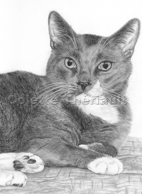 This is Ms. Christine Kola's second commissioned portrait of her cat Hamlet.  I used two main reference photographs for this cat's portrait.