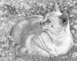 Many more wildlife watercolor, acrylic and pastel paintings, graphite pencil, colored pencil and charcoal drawings and sketches of animals and pets can be found in my art gallery. See portraits of dogs, puppy, cats, kitten, horses, pony, fancy rat, birds, elephant, butterfly, rhinoceros, jaguar, moose, raccoon, red fox, rabbit, hare, lion, zebra, owl, wolf and more. Commission an original custom wildlife painting or drawing,  dog portrait, cat portrait, horse portrait or other animal portrait today. These original, hand-made, custom pet portraits and wildlife paintings or animal drawings make wonderful memorial gifts for every dog, cat, horse or animal lover.