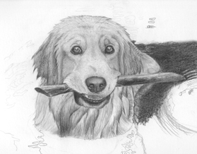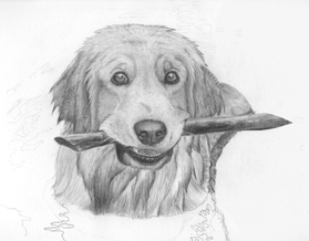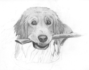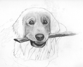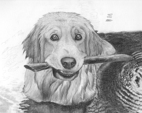 The finished portrait of Hank retrieving a stick.