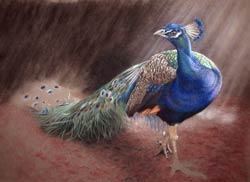 Pastel painting of the official bird of India.