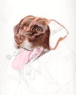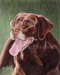 The last of  Cookie's body fur is added as well as the details of the grass. This chocolate lab's portrait is now complete! Click image for more details.
