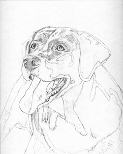 The basic outline sketch of Cookie's portrait. Since this is a painting, I do not fill in all the dark areas.