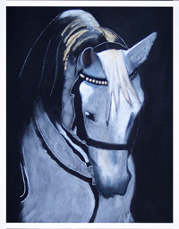 The eye details have been added and I started blocking the mane and adding highlights.  The nose is becoming more defined as I add the nostrils.