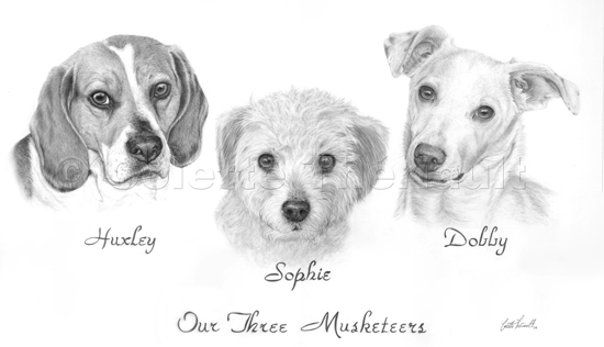 Dobby's portrait is complete. Scroll above page to view the group portrait of all three dogs.